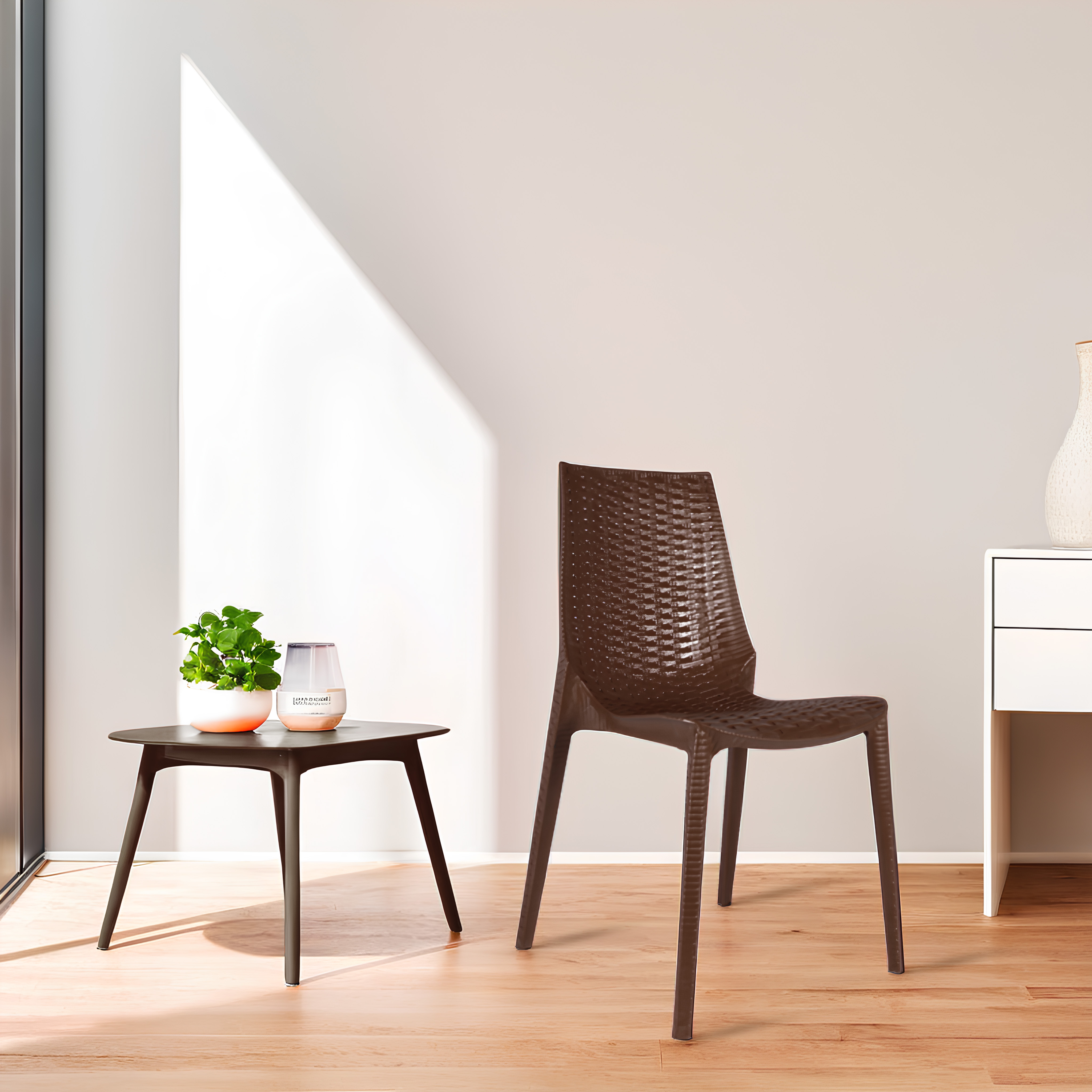 Combo idea: Plastic or rattan chairs paired with a heavy metal table.