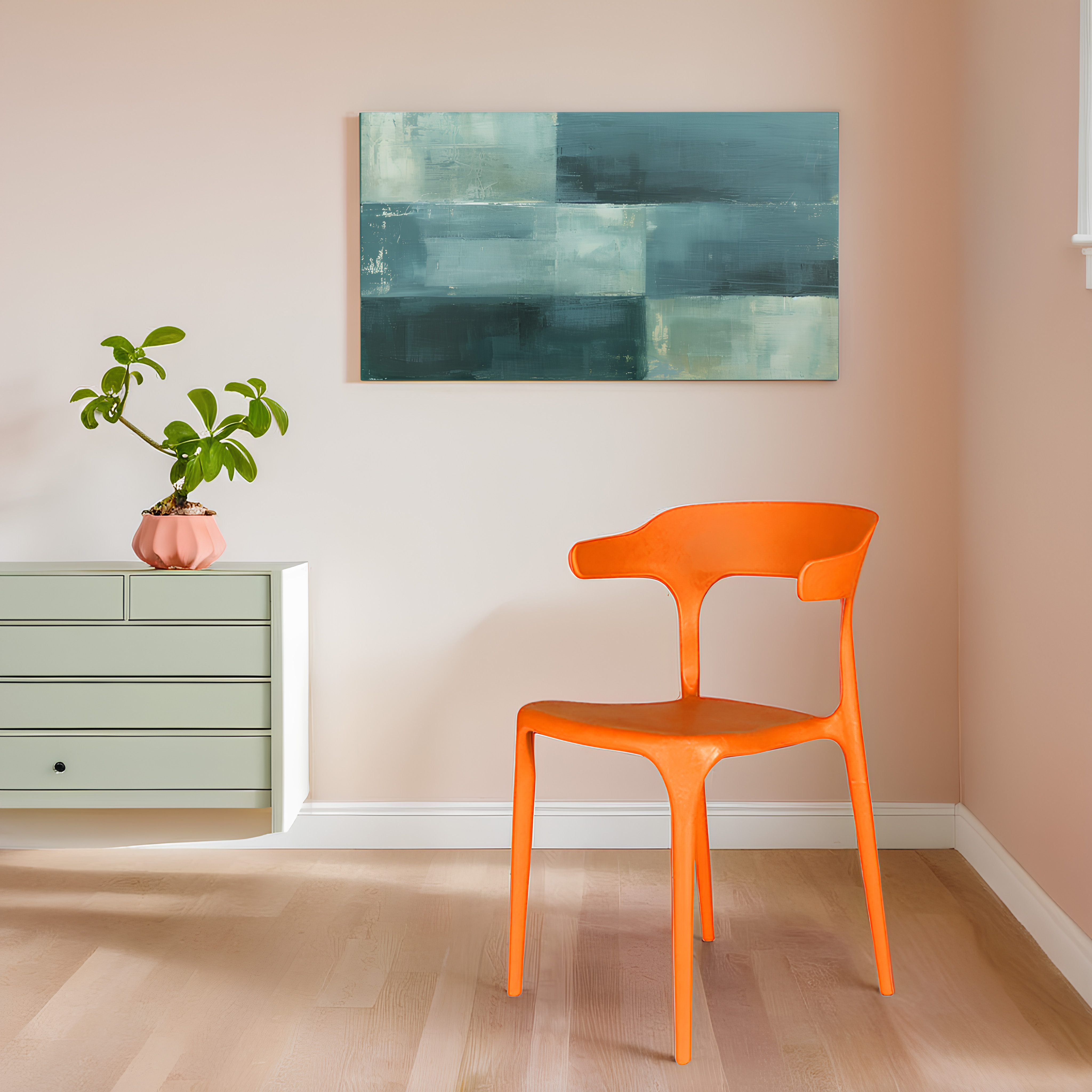 Sleek metal or wooden chairs with thin legs seem soft and airy.