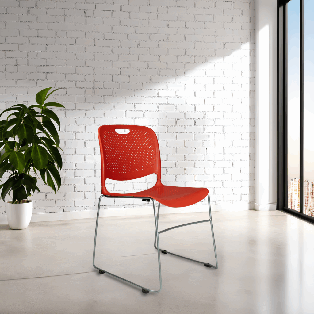 Consider how your chairs will play in your places too. Do you have a tiny café where every square inch matters? Choose chairs that stack easily or tuck neatly behind others. Have a nice big place? You can opt for larger, plushy chairs that invite people to linger.