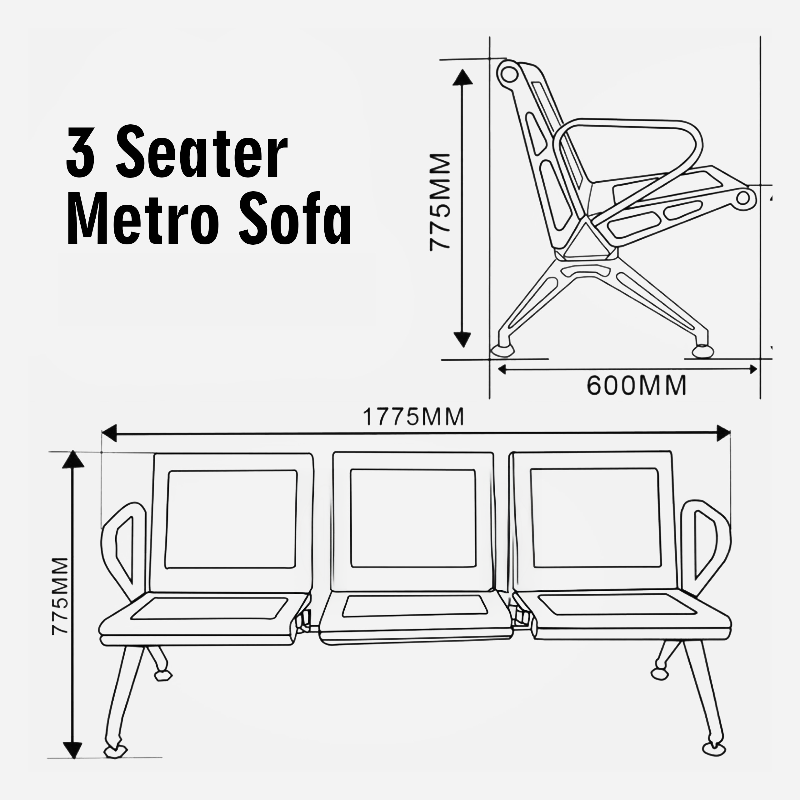 This 3-seater metal frame sofa is built to handle weight and pressure without compromising on structure. The anti-rust coating protects it in humid conditions, making it a smart choice for Indian weather.
