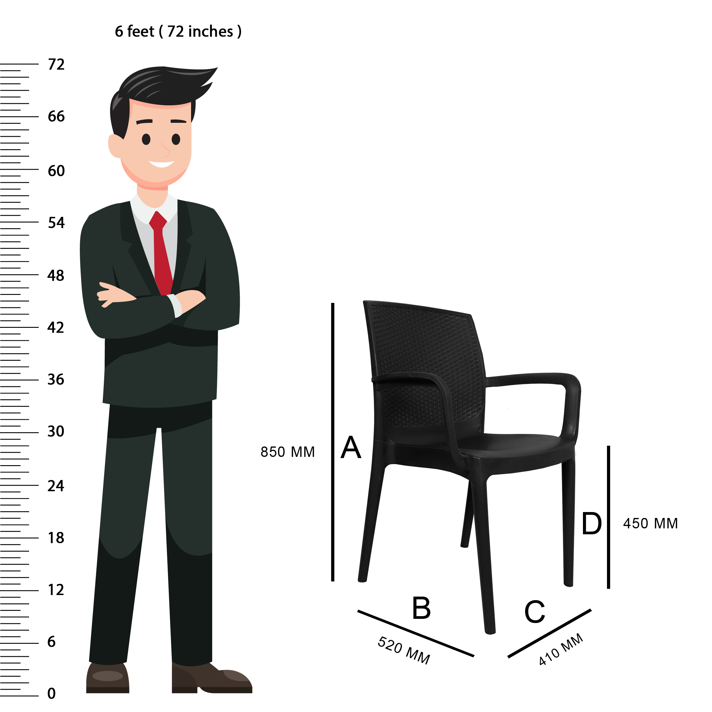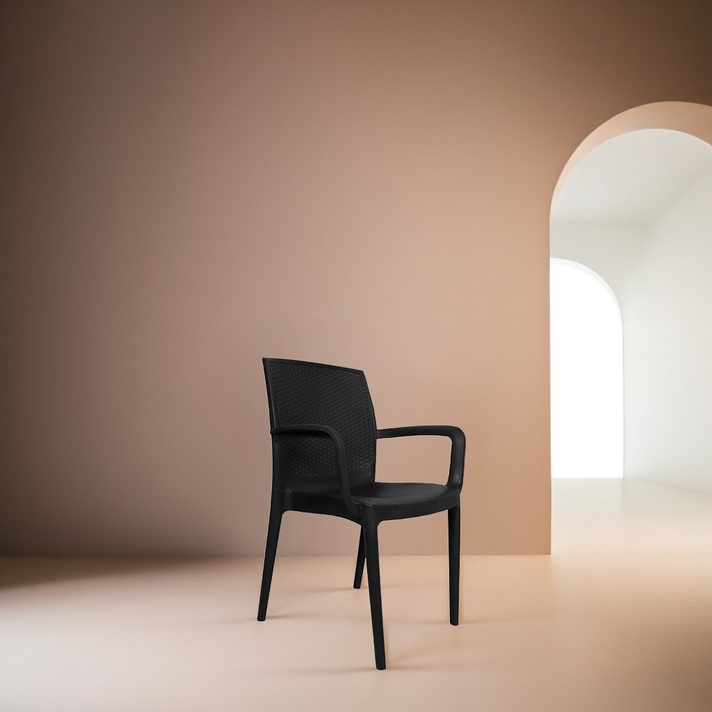 The Cafe Chair with Arms is made from durable polypropylene and supported by a strong metal frame. Its ergonomic design ensures proper back and arm support, making it a perfect option for extended sitting hours. The inclusion of armrests helps maintain posture and reduce fatigue—ideal for both casual and professional settings.