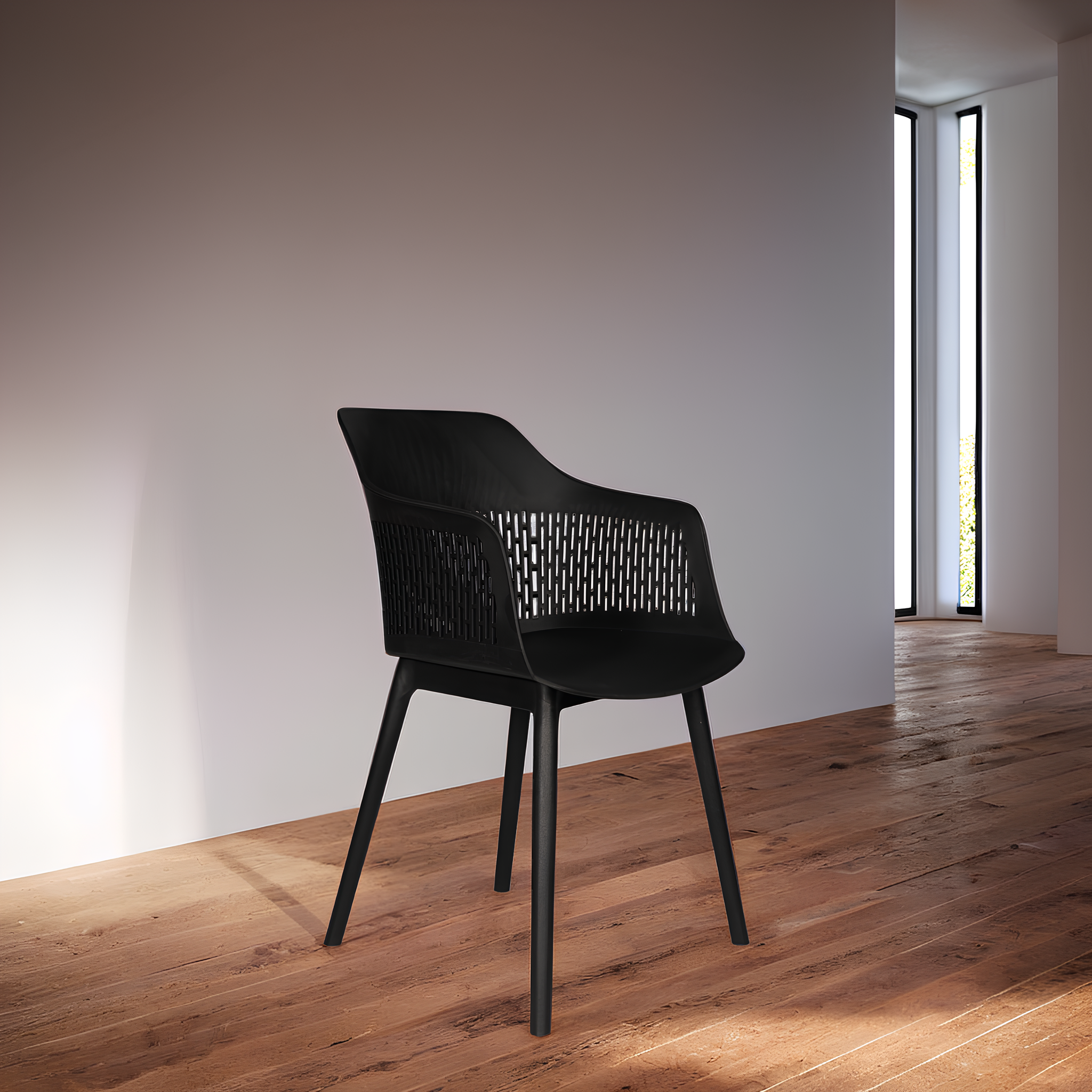 Built with precision, the chair’s strong frame ensures resistance to daily wear and tear. The sturdy black legs not only enhance its appearance but also provide excellent weight-bearing capacity. The high-quality seat material is designed to retain its shape and comfort, even with prolonged use.