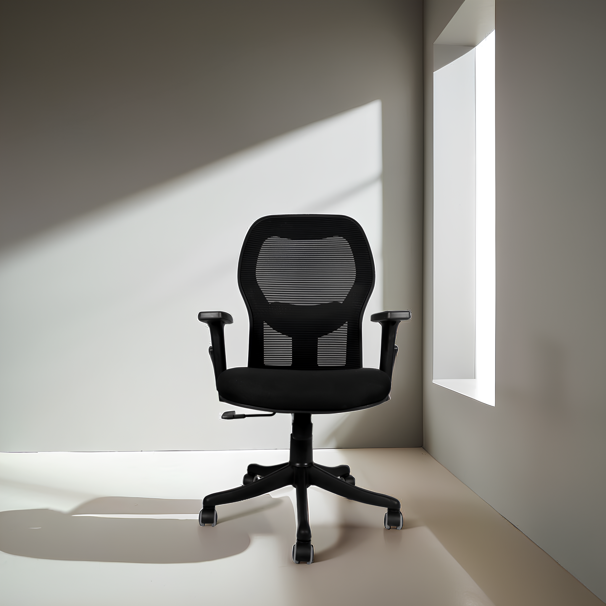Its breathable mesh back enhances airflow, keeping you cool throughout the day—especially during hot Indian summers. The S-shaped backrest follows the natural curve of your spine, reducing stress on your lower back. With adjustable lumbar support, height control, and armrests, you can customize your seating experience for maximum comfort and posture alignment.